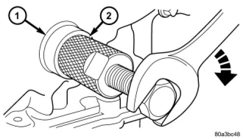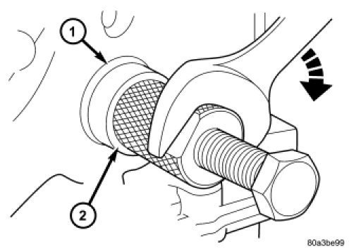 5. Position Special Tool 6341A (2) on crankshaft nose. Carefully screw the tool into the seal until it engages firmly. Be careful not to damage that crankshaft seal surface of cover