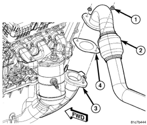3. Using a new gasket, connect exhaust pipe to exhaust manifold flange. Tighten bolts to 36 Nm (27 ft. lbs.).