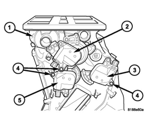 15. Install the two screws (4) that secure each actuator to the air distribution housing. Tighten the screws to 2 Nm (17 in. lbs.).