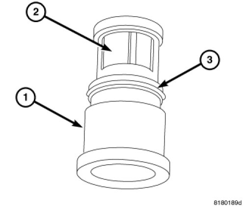 The replaceable desiccant and filter assembly within the A/C receiver/drier consists of a plastic housing (1) which contains a pre-measured amount of desiccant and a filter screen (2). A rubber O-ring (3) is used to seal the assembly to the receiver/drier bottle.