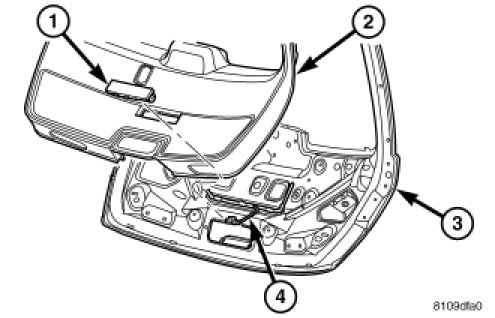 2. Install the liftgate trim panel (2) Liftgate Trim Panel - Installation.