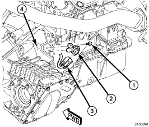 1. Install crankshaft position sensor (2) to the transmission housing (4).