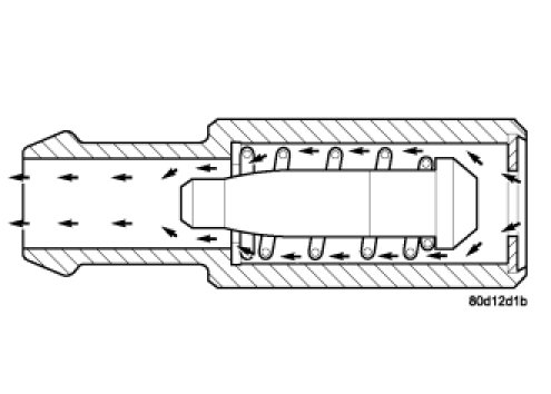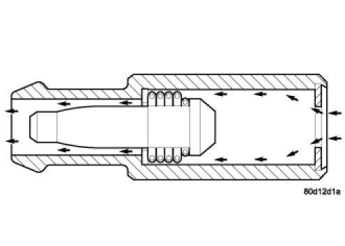 During periods of high manifold vacuum, such as idle or cruising speeds, vacuum is sufficient to completely compress spring. It will then pull the plunger to the top of the valve. In this position there is minimal vapor flow through the valve.
