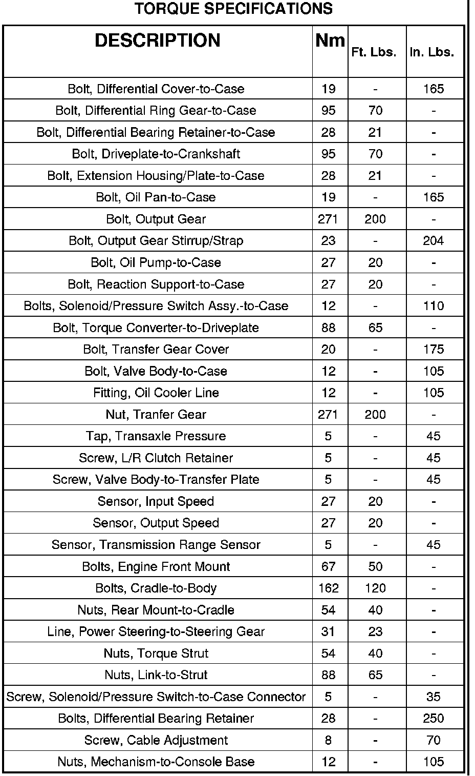 19 Nm (165 in. lbs.)