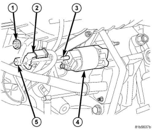 8. Connect electrical connector (5) to starter solenoid (4).