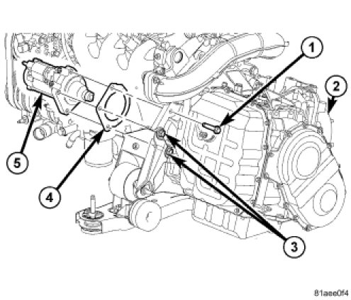 4. Install two front transmission mount to starter mounting bolts (3) and tighten to 54 Nm (40 ft. lbs.)