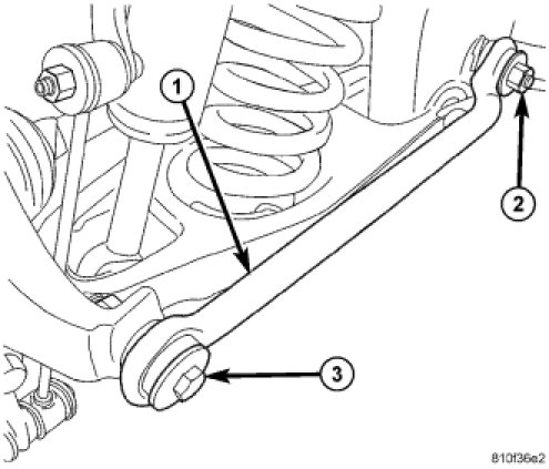 1. Slide offset end of toe link (1) over cam bolt at crossmember.