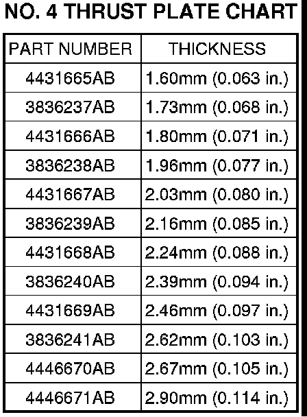 62. Refer to the No. 4 thrust plate chart NO. 4 THRUST PLATE CHART to select the proper No. 4 thrust plate.