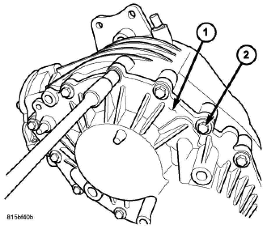 3. Install end cover (1)to PTU housing. Install and torque end cover-to-housing bolts (2) to 28 Nm (20 ft. lbs.).