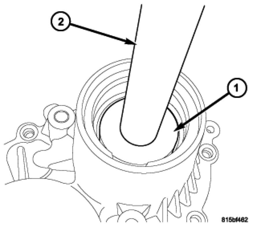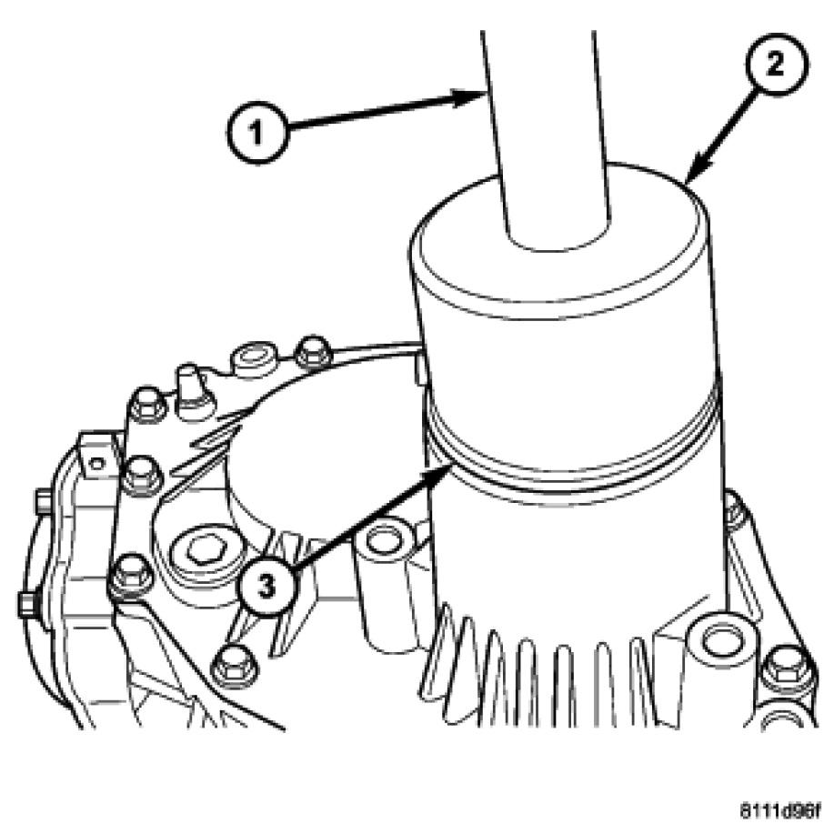 4. Using driver Handle C-4171 (1) and seal Installer 6536A (2), install outer halfshaft seal (3).