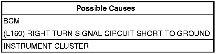 - Repair the (L160) Right Turn Signal circuit for a short to ground.