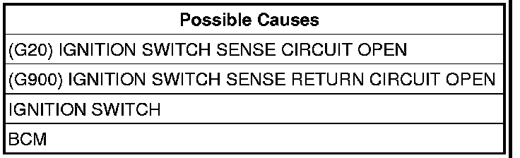 3. (G20) IGNITION SWITCH SENSE CIRCUIT OPEN