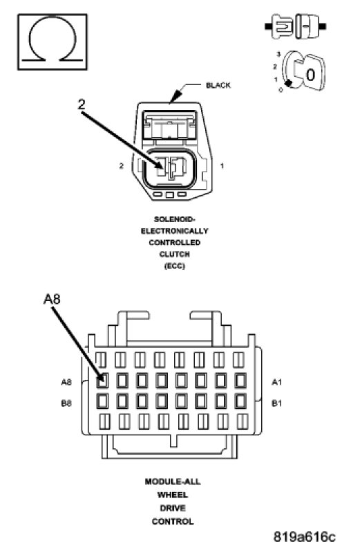The AWD Module detects the ECC Solenoid Power Control is shorted low.