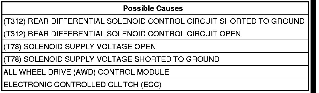- Repair the short to ground in the (T312) Rear Differential Solenoid Control circuit.