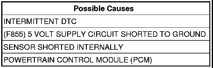 Disconnect the connector for each sensor or component that shares the (F855) 5 Volt Supply circuit, one at a time, and note the circuit voltage.