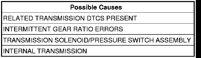 - Diagnose and repair the DTC(s). If any of these DTCs are present, they will cause a gear ratio error. Perform the test for Loss of Prime first if it is present.