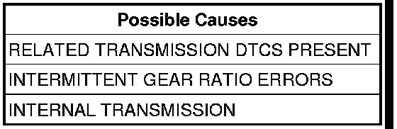 - Diagnose and repair the DTC(s). If any of these DTCs are present, they will cause a gear ratio error. Perform the test for Loss of Prime first if it is present.