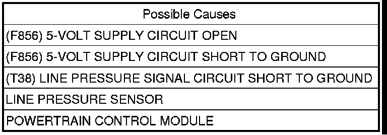 - Repair the (T38) Line Pressure Sensor Signal circuit for a short to ground.