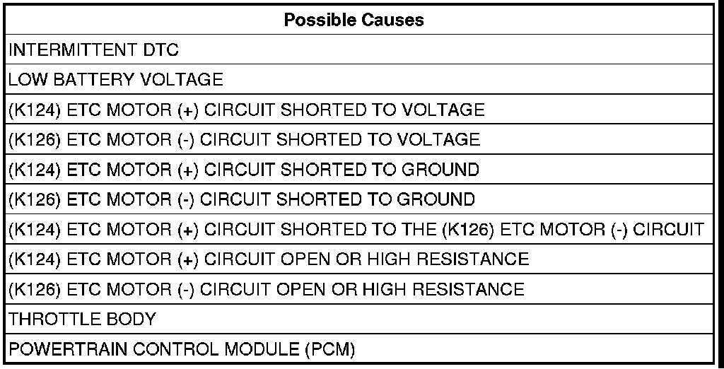 5. (K124) ETC MOTOR (+) CIRCUIT SHORTED TO THE (K126) ETC MOTOR (-) CIRCUIT