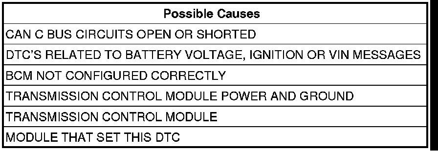 Bus messages not received from the Transmission Control Module for approximately 500ms.