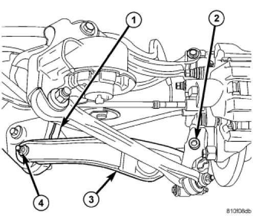 16. Remove lower mounting bolt (2) and nut (4) at each rear shock absorber.