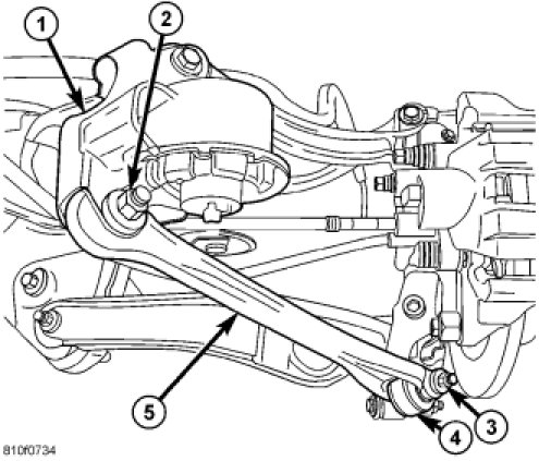 34. Remove bolt and nut (2 and 3) mounting compression link (5) to crossmember.