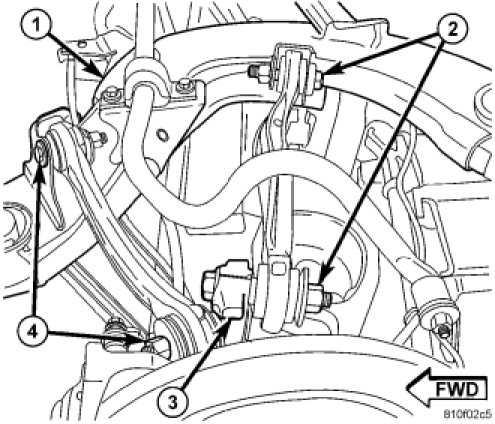 28. Remove bolt and nut (3) fastening stabilizer bar to each stabilizer link (4).
