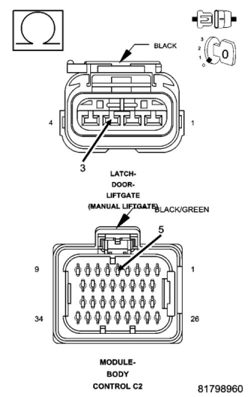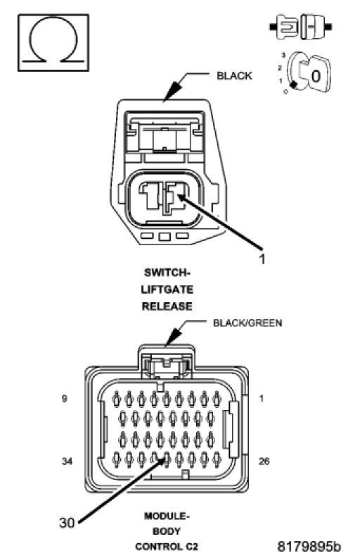 Remove the liftgate inner door trim panel to gain access to the Liftgate Latch connector.