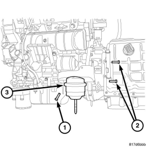 6. Install both of the engine mount to cradle nut. Tighten nut to 101 Nm (75 lbs. ft.).