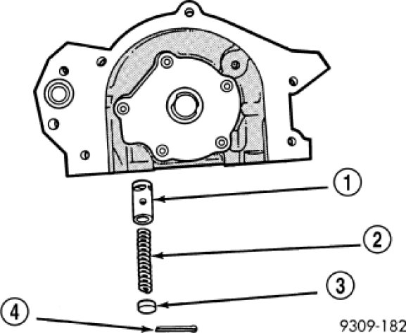 1. Inspect oil pressure relief valve (1) plunger for scoring and free operation in its bore. Small marks may be removed with 400-grit wet or dry sandpaper.
