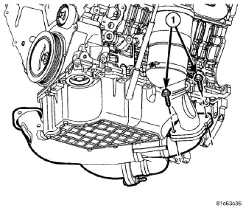 3. Loosely install the rear maniverter-to-crossunder fasteners (1).