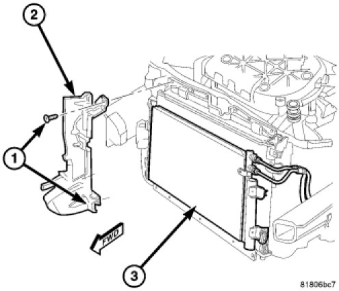 NOTE: Be certain that each of the radiator and condenser air seals are installed in their proper locations. These air seals are required for the A/C and engine cooling systems to perform as designed.