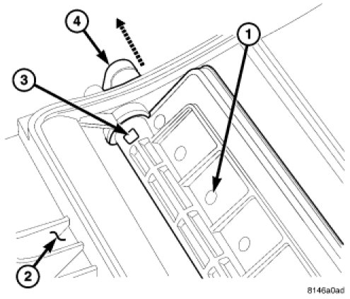 5. Remove the screw (1) from the center of the driver side of the air distribution housing (2).