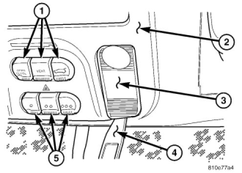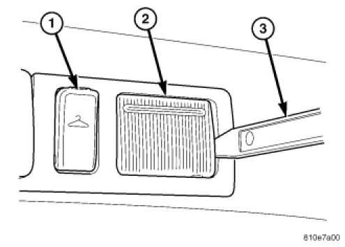 2. Place the rear reading lamp lens (2) over the retaining pins making sure that they are lined up and then firmly snap into place.