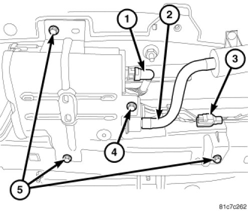 1. Install evaporative system integrity monitor (ESIM) switch (1) to vapor canister (3) and rotate 1/4 turn clockwise until the lock tab engages. Make sure electrical connector is in the 3 O'clock position and the seal is properly installed, otherwise a MIL will occur.