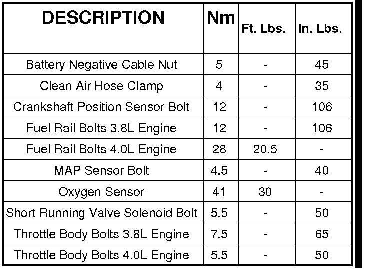 Fuel Injection Torque Specifications