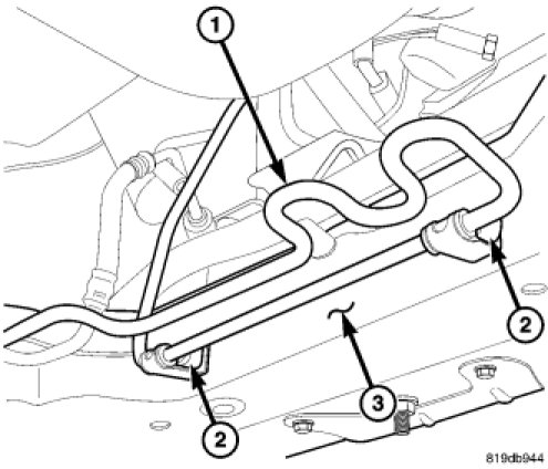 1. Place cooler loop (1) in mounted position against rear of engine cradle (3).