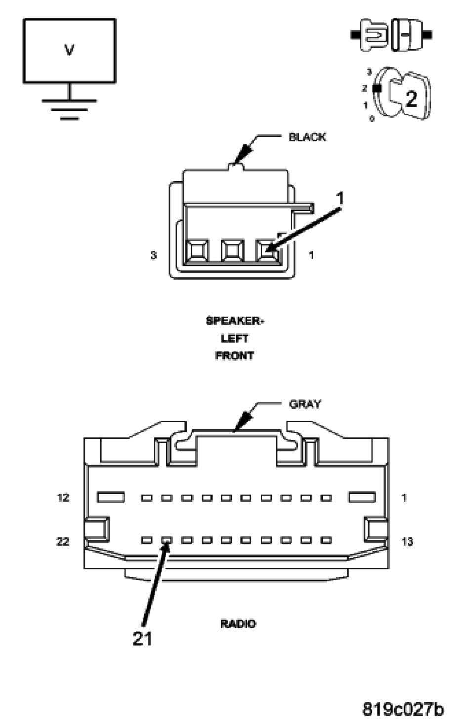 Measure for voltage on the (X291) Left Front Speakers (-) circuit.
