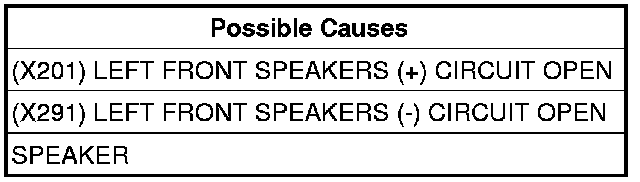 - Repair the (X201) Left Front Speakers (+) circuit for an open condition.