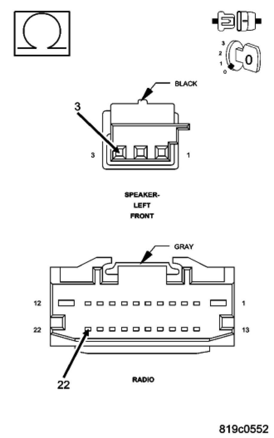 Measure the resistance of the (X291) Left Front Speakers (-) circuit between the Radio and the Speaker.