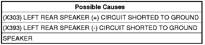- Repair the (X303) Left Rear Speaker (+) circuit for a short to ground condition.