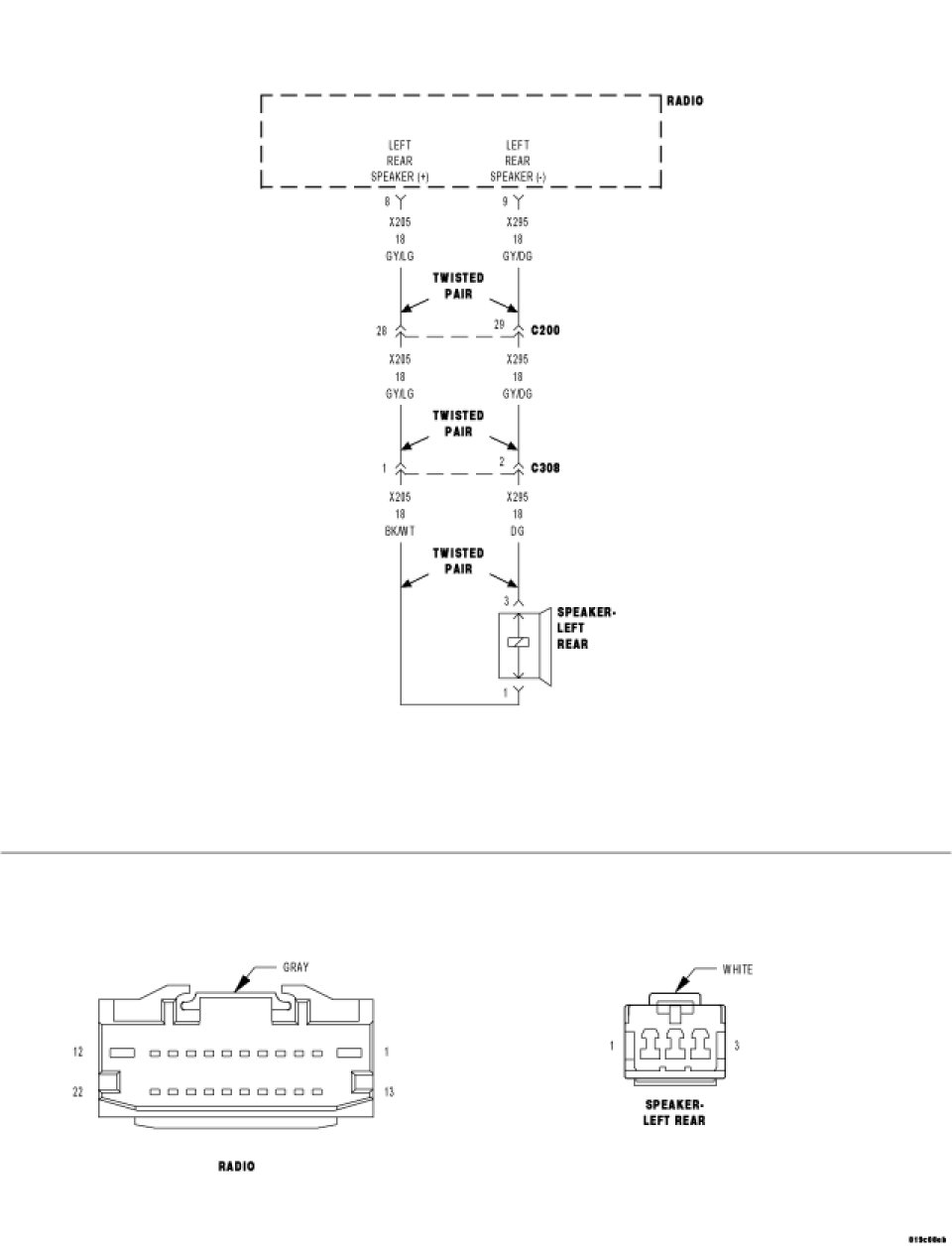 2. (X303) LEFT REAR SPEAKER (+) CIRCUIT SHORTED TO GROUND