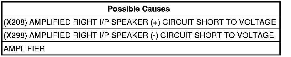 - Repair the (X208) Amplified Right I/P Speaker (+) circuit for a short to voltage.