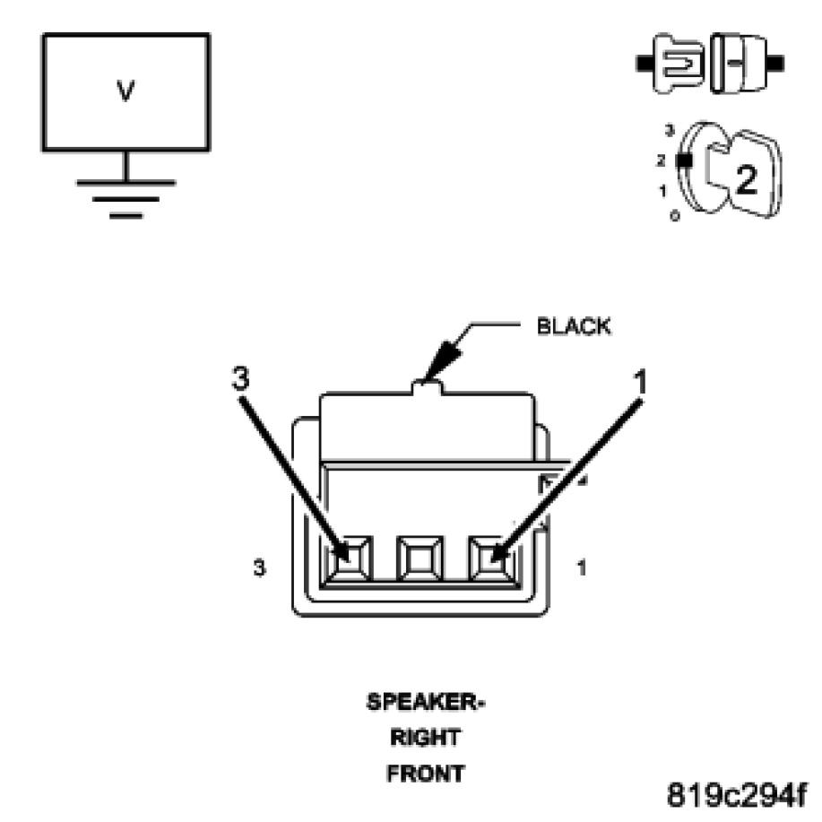With a voltmeter set to read in A/C voltage, measure the voltage of the Amplified Right Front Speaker circuits in the Amplified Right Front Speaker harness connector.