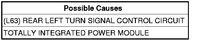 - Repair the (L63) Rear Left Turn Signal Control circuit for a short to ground.