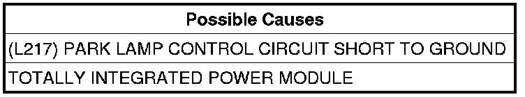 - Repair the (L217) Park Lamp Control circuit for a short to ground condition.