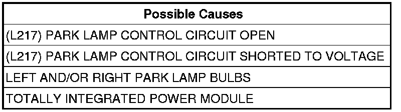 - Repair the (L217) Park Lamp Control circuit for an open condition.