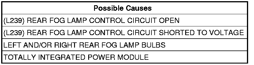 - Repair the (L239) Rear Fog Lamp Control circuit for an open condition.
