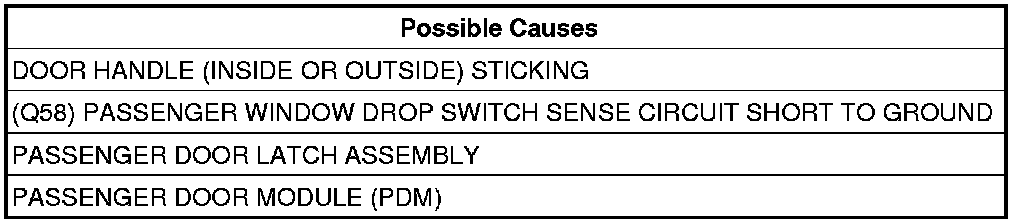 4. (Q58) PASSENGER WINDOW DROP SWITCH SENSE CIRCUIT SHORT TO GROUND