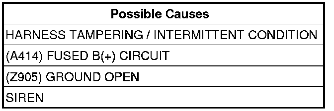 3. CHECK THE (A414) FUSED B(+) CIRCUIT AT THE SIREN